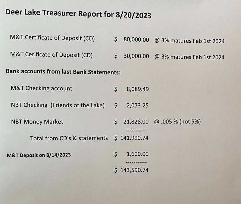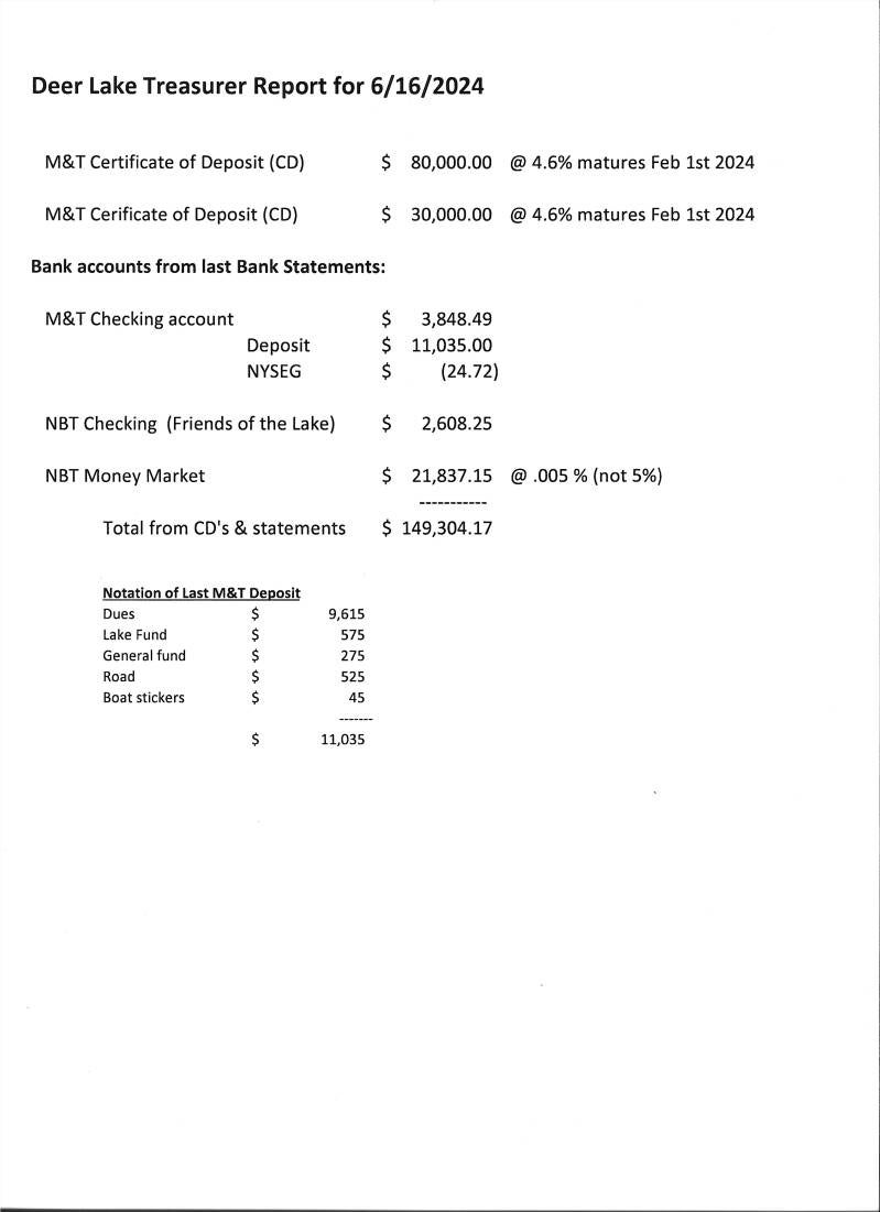 6. Friends of the Lake will get the clubhouse set up with Bottled water and soda that can be purchased at Clubhouse events. Cindy volunteered to pick this up at her next shopping trip.