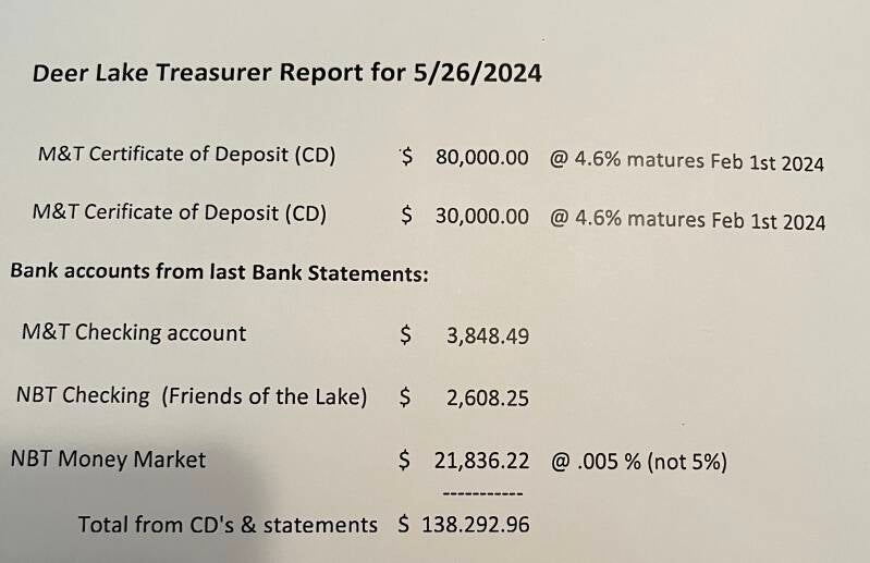 5. The Potluck dinner after the May 26th Board Meeting will not be hosted by the Friends of the Lake, and the website has been corrected.